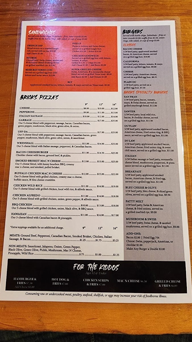 Welcome to **Bricks Wrenshall Pub**, a cozy hidden gem nestled in the heart of Wrenshall, MN. This delightful establishment is more than just a bar; it offers an inviting atmosphere perfect for both relaxation and camaraderie. Patrons rave about the comforting vibe and the delicious menu that features favorites like crispy chicken strips and zesty tacos. Each dish reflects the pub's commitment to quality and flavor, making it a must-visit for food lovers.